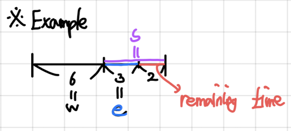- w (waiting time): 지금까지 기다린 시간 또는 대기시간을 말한다.